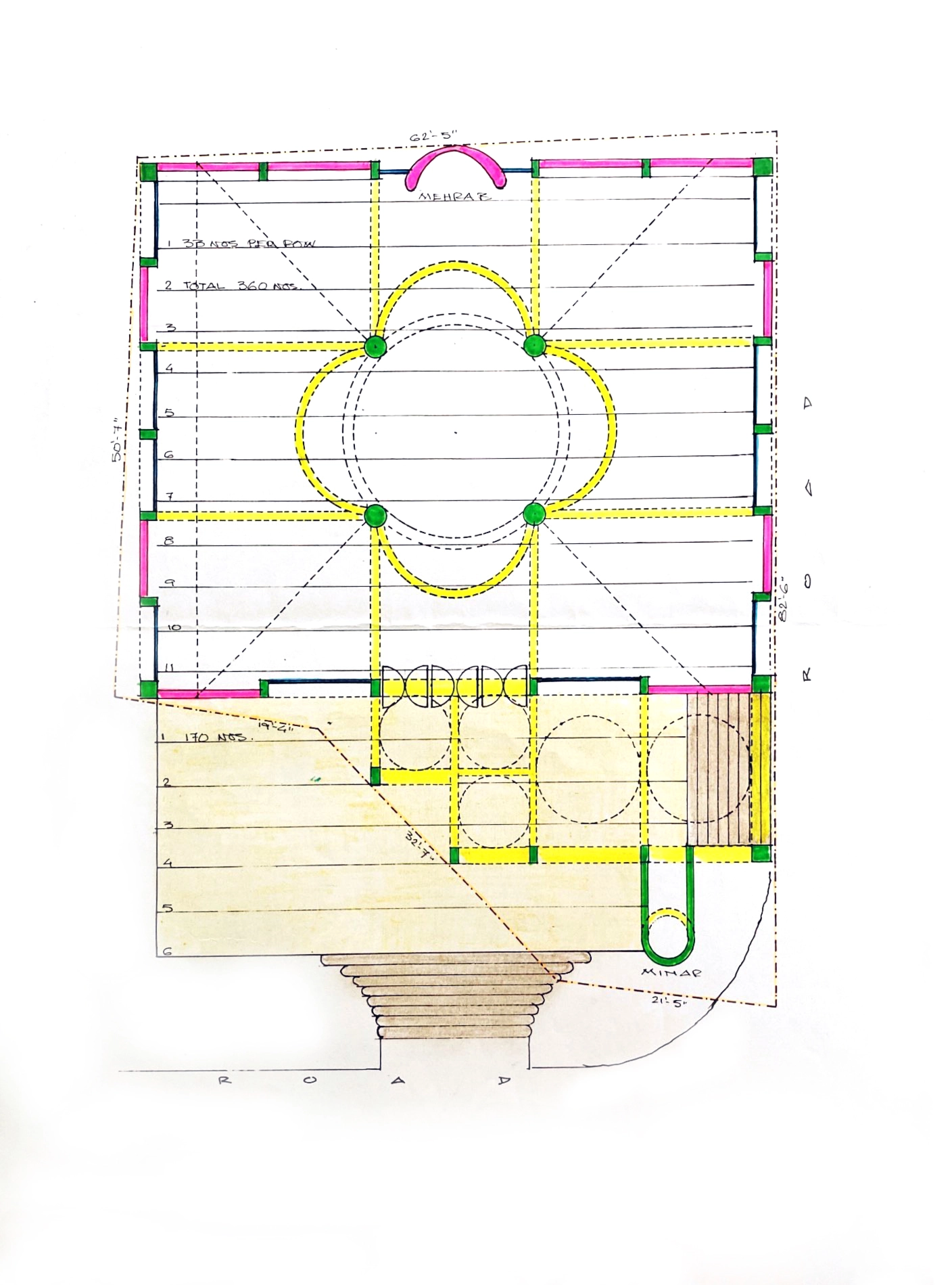 After the initial plan layout on proposed land, due toirregular size of plot, I negotiated with the owners of west side adjacent plotfor accommodation of the proposed masjid by giving and taking policy, thus constructiondelays.